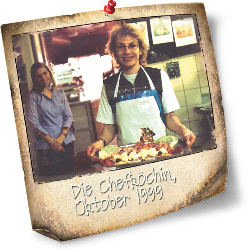 Nebenbei absolvierte ich auch noch die Wirtefachprüfung – Vom Januar bis März 2000 drückte ich also die Schulbank, um richtig zu Servieren, produktiv zu Kochen und das Feuerlöschen zu beherrschen. Aber selbst die erste hausgemachte Suppe wollte einfach nicht warm werden, da der Herd zu alt und die Kochtöpfe zu unförmig waren und so die Wärme nicht mehr richtig aufnehmen konnten.
